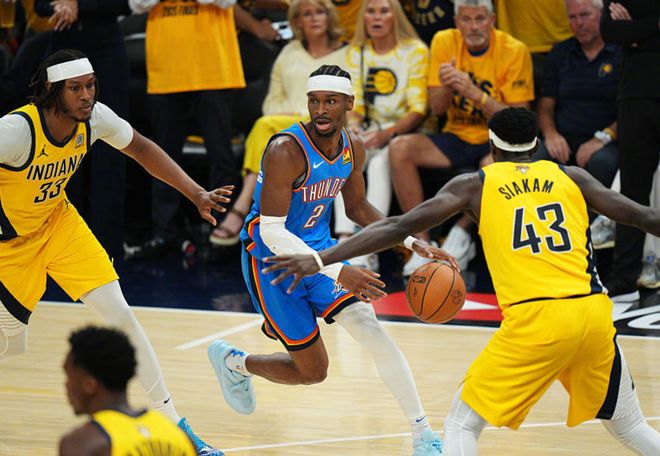 雷霆從21-22賽季起,每年一個(gè)臺(tái)階,21-22賽季24勝58負(fù);22-23賽季40勝42負(fù);23-24賽季57勝25負(fù);上賽季68勝14負(fù)。從上賽季起,亞歷山大打法悄然發(fā)生變化:從原來(lái)的維持常規(guī)火力輸出,變成兜底的角色。隨著杰威和霍姆格倫的崛起,亞歷山大通常會(huì)讓隊(duì)友先得分,這一點(diǎn)和勇士的庫(kù)里很像,如果實(shí)在膠著或者處于劣勢(shì),自己再來(lái)!與此同時(shí),亞歷山大已經(jīng)連續(xù)三個(gè)賽季場(chǎng)均至少30分5籃板5助攻!還有一個(gè)數(shù)據(jù),亞歷山大上賽季總決賽前4場(chǎng),關(guān)鍵時(shí)刻拿到14分(后三場(chǎng)沒(méi)關(guān)鍵時(shí)刻),歷史第三!